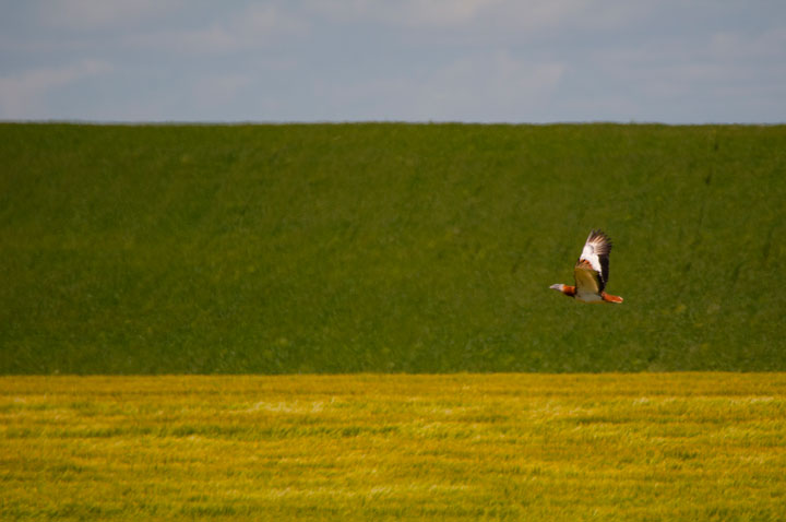 Marzo-abril: la reina de las aves esteparia es la singular Avutarda, la más pesada de las aves voladoras, que pasta por nuestros campos todo el año, en los meses de primavera despliega su máximo atractivo al realizar la singular rosca de la avutarda, un singular baile en el que el macho trata de captar la atención de las hembras con una atractiva colocación de su plumaje.